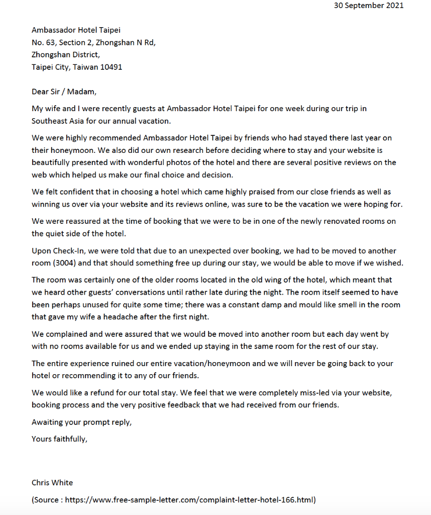 Thank You Letter Format Send To Hotel Guests